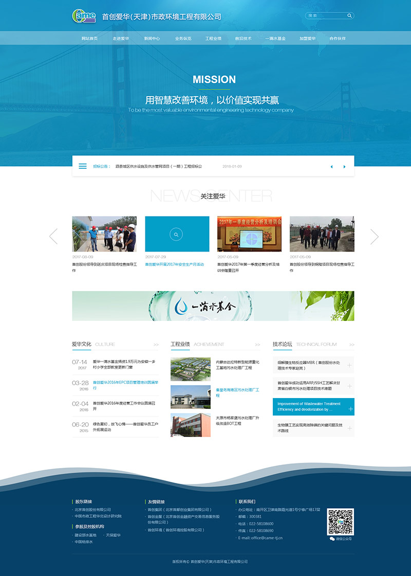 前身為國(guó)中愛華(天津)市政環(huán)境工程有限公司,成立于2001年12。2007年4月,愛華公司進(jìn)行股權(quán)重組,首創(chuàng)(香港)有限公司、香港儷盈有限公司成為新的股東方。公司亦正式更名為首創(chuàng)愛華(天津)市政環(huán)境工程有限公司...
