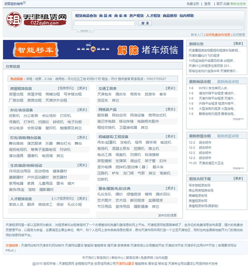 天津租賃網(wǎng)是一家以互聯(lián)網(wǎng)為載體,為租賃者和出租者提供了一個方便查詢和免費(fèi)刊登信息的網(wǎng)上平臺。我們的工作就是在租賃雙方之間搭構(gòu)一座橋梁,使其能方便快捷地完成租賃業(yè)務(wù)、資源共享、商務(wù)洽談...